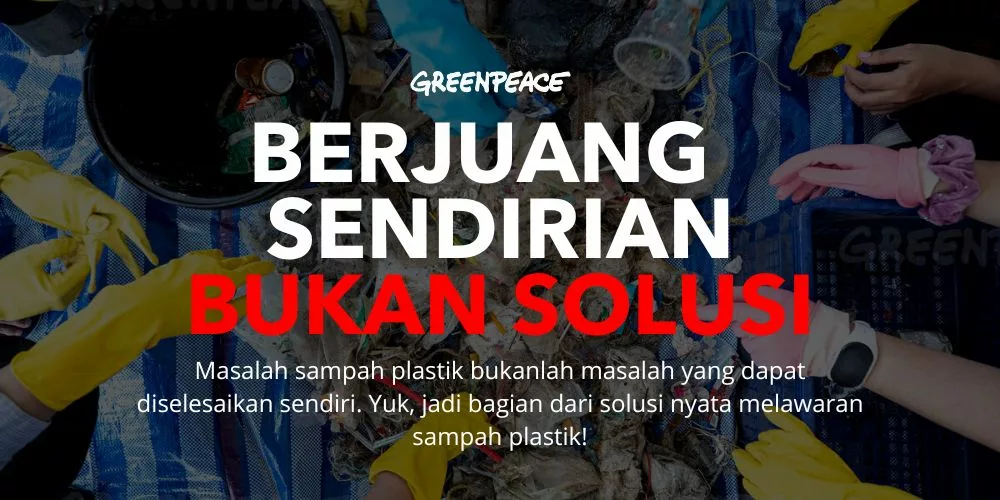 Bergabunglah dengan kampanye Greenpeace yang mendorong pemerintah, produsen, dan stakeholder terkait untuk melakukan perubahan sistem dan regulasi yang lebih serius untuk menangani masalah sampah plastik dan lingkungan, dengan berdonasi mulai dari Rp 15.000.